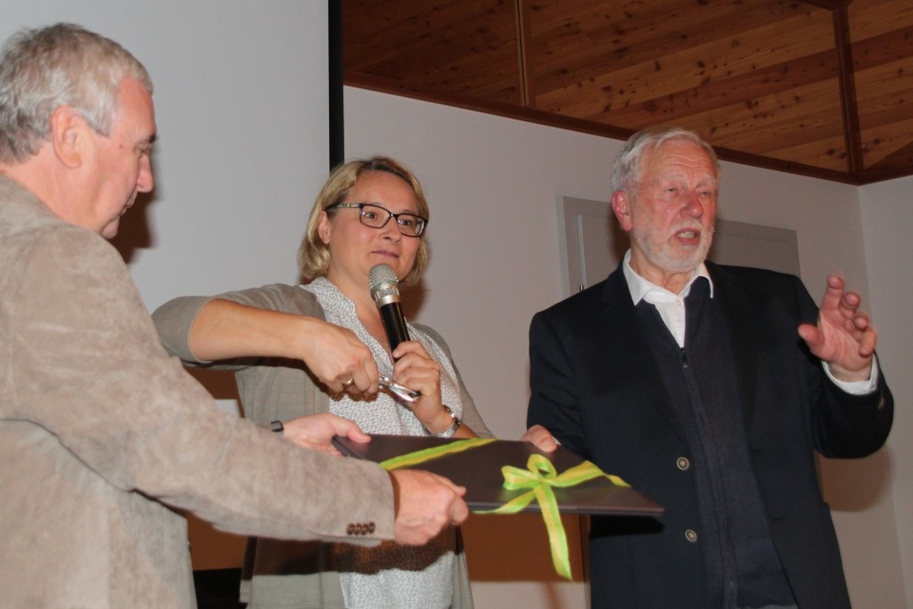 Bgm. Irmgard Schibich eröffnet symbolisch die Topothek, gemeinsam mit Johann Popelka und Gerald Veitsmeier. Foto: Edeltraud Popelka