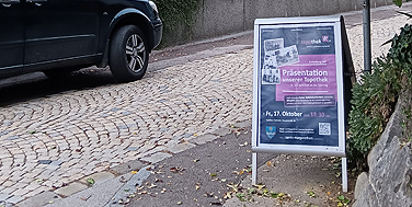 Plakate künden die Eröffnung der Topotehk an. © A. Schatek