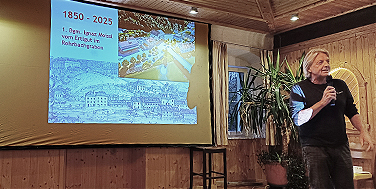 Eine der ältesten Ansichten des Ortes ist das Gemälde, das an den Brand von 1846 erinnert. Aber auch aus dem Alltagsleben der noch greifbereren Vergangenheit sind schon viele Bilder zu finden – bestimmt haben noch manche ältere Herrschaften gute Erinnerungen an die Bar im Gasthaus Damhofer. Von Live-Musik begleitet und mit einer Weinverkostung abgeschlossen war es ein historischer Abend für Reichraming, der alle Sinne ansprach.