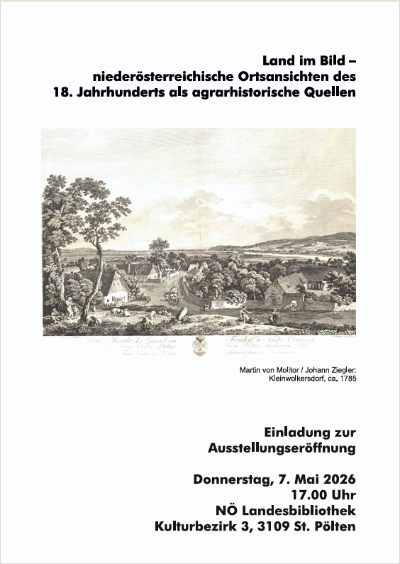Die Ausstellung trägt den Titel „Land im Bild – niederösterreichische Ortsansichten des 18. Jahrhunderts als agrarhistorische Quellen“ und wird am 7. Mai um 17.00 Uhr in St. Pölten eröffnet.