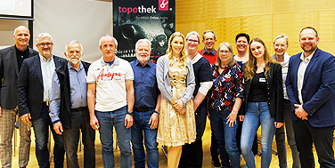 The Toptheque team from left to right: Alexander Schatek (Topotheque), Felix Fößleitner (Management LEADER-region Kalkalpen), Bernhard Mayr (Topothequer), Bernhard Renöckl (Topothequer of Ternberg and advisor for the Aschach team), Leopold Ziebermayr (Topothequer), Doris Graf (Topothequer and Moderation of the evening), E. Seidl (Topothequer and lector), Franz Etlinger (Topothequer), Hilda Ziebermayr (Topothequer), Maria Etlinger (municipality), Isabel Angerer (Topothequer and municipality), Eva Kaiplinger (Topothequer and municipality), Mayor Ralf Rosegger © Municipality Aschach an der Steyr